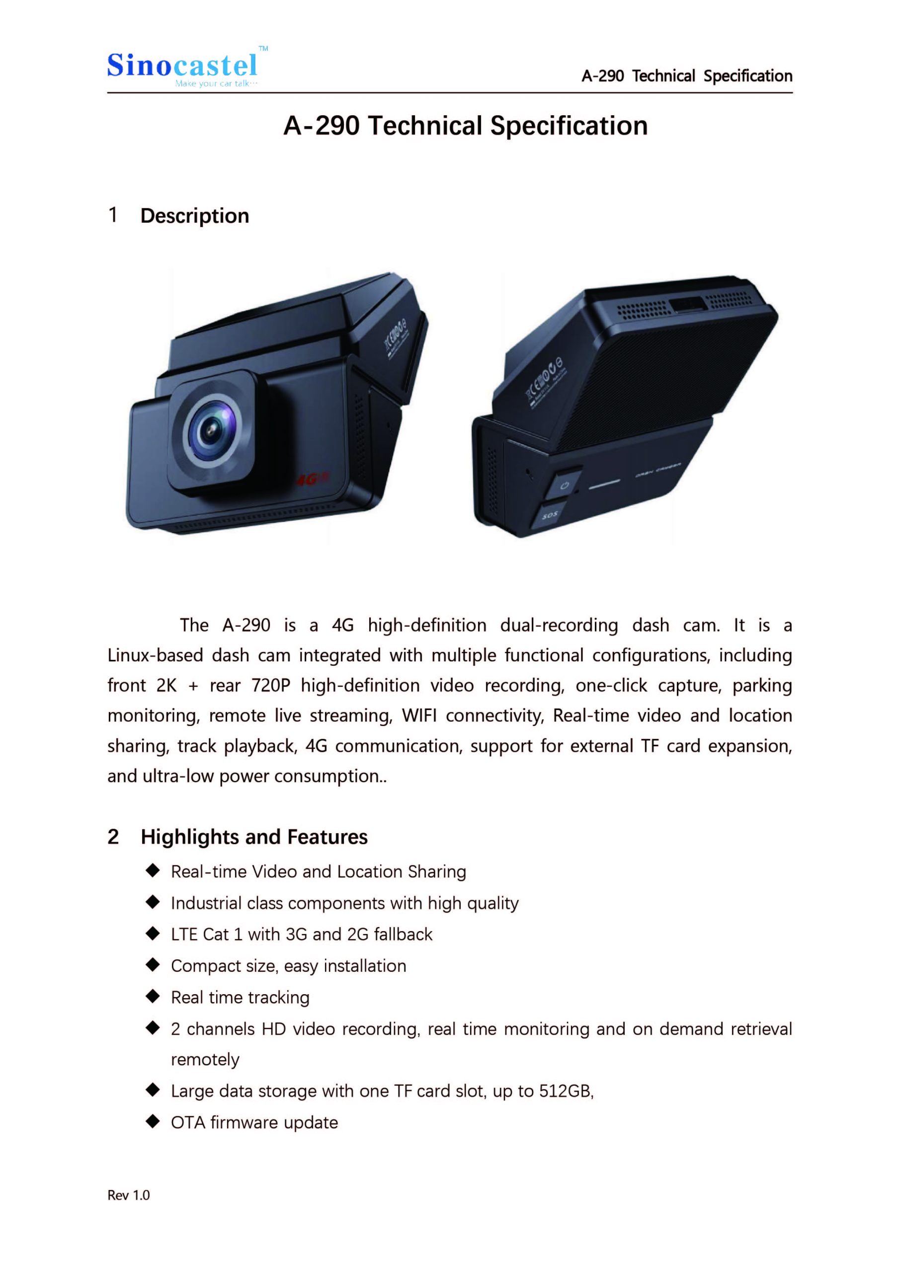 It is a Linux-based dash cam integrated with multiple functional configurations, including front 2K + rear 720P high-definition video recording, one-click capture, parking monitoring, remote live streaming, WIFI connectivity, Real-time video and location sharing, track playback, 4G communication, support for external TF card expansion, and ultra-low power consumption.